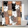 Charming Cats Shower Curtain Black White with Yellow Accents Pattern Decorative Bath Linen Waterproof Fabric Various Sizes Avail