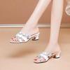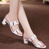 Summer two wear cool slippers outside fashion women's shoes hollow Korean version thick heel cool slippers middle-aged and elderly