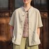 Johnature Women Vintage Shirts Tops O-Neck Bat Sleeve Blouses Summer Solid Color Loose Button Pockets Shirts