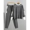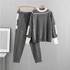 Vår og høst strikkesett for kvinner Mote Temperament Uformelt strikkede toppbukser i to deler