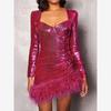 Temperament Long sleeve Zip-up Fashion Party Dress Autumn and Winter Party Dress Party Winter Dress
