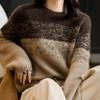 Wind lapel gradual change sweater women's autumn and winter new Fair Island jacquard bright silk design loose knitted sweater