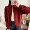Short design zipper semi-turtleneck knitted cardigan women's small casual simple solid color sweater jacket
