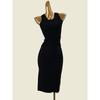American Brand Double V Neck Knitting Long Dress Fashion Wind Black Basic Style Sunken Stripe Silm Base Export Dress