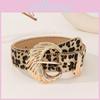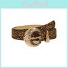 Fashion Print Leopard Pattern Rhinestone Metal Buckle Decoration Women Wide Belt