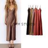 Summer V Neck Sling Mid-Length Silk Satin Texture Midi Skirt Dress 2452331 3258331 8331