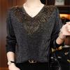 Women Autumn and Winter Warm Vintage Clothing Long Sleeve T-shirt Y2k V-neck Korean Plus Size Casual Tops