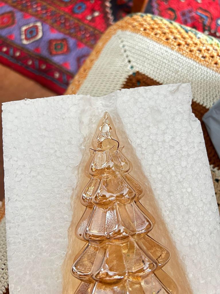 Disse juletrærne er laget av glass av høy kvalitet og er holdbare og langvarige, noe som gjør dem til det perfekte tilskuddet til julesamlingen din.. Enkel å bruke, trykk ganske enkelt på knappen på basen for å nyte det myke gylne lyset som skinner gjennom de intrikate etsede mønstrene.