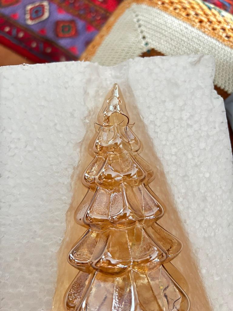 Fortryllende LED-belysning: Hvert tre har et varmt LED-lys innebygd i basen, som kaster et mykt gyllent skjær gjennom intrikat glass.. Skap en magisk atmosfære som tilfører festlig sjarm til ethvert rom uten overveldende lysstyrke.