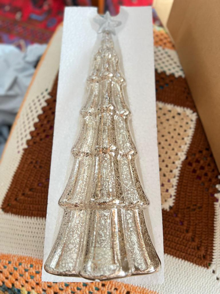 Med sine reflekterende sølvfinisher og retrostil fanger og reflekterer disse trærne lys fra alle vinkler, og skaper en blendende visning.. Enten de plasseres på en kaminhylle, et spisebord eller en bokhylle, vil disse trærne utfylle ethvert juletema på en vakker måte.
