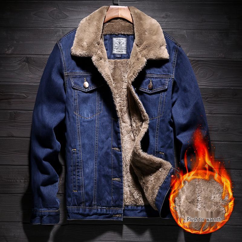 Embrace style and warmth this autumn and winter with this men's denim jacket, featuring a tailor neckline and an insulated outer layer for added comfort. The solid pattern and robust design reflect a timeless cowboy fur material, while the cotton fabric ensures durability and breathability. Designed with long sleeves, this jacket provides a snug fit perfect for cold weather occasions. Ideal for those seeking a classic yet functional wardrobe staple.