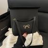 Solid color fashion bow new trendy texture commuting shoulder underarm baguette bag women