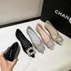 Pointed thick heel small fragrant single shoes women's new temperament square buckle rhinestone low heel cm evening shoes