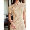 Retro şakayık baskı yedi noktalı kol gevşek Bir kapak et sümük etek pilili moda bahar yeni kadın versiyonu