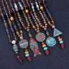 Two Pc Surfers Turquoise Wooden Bead Necklace Men's Hip-hop Minority High Sense Men's Beaded Clavicle Chain